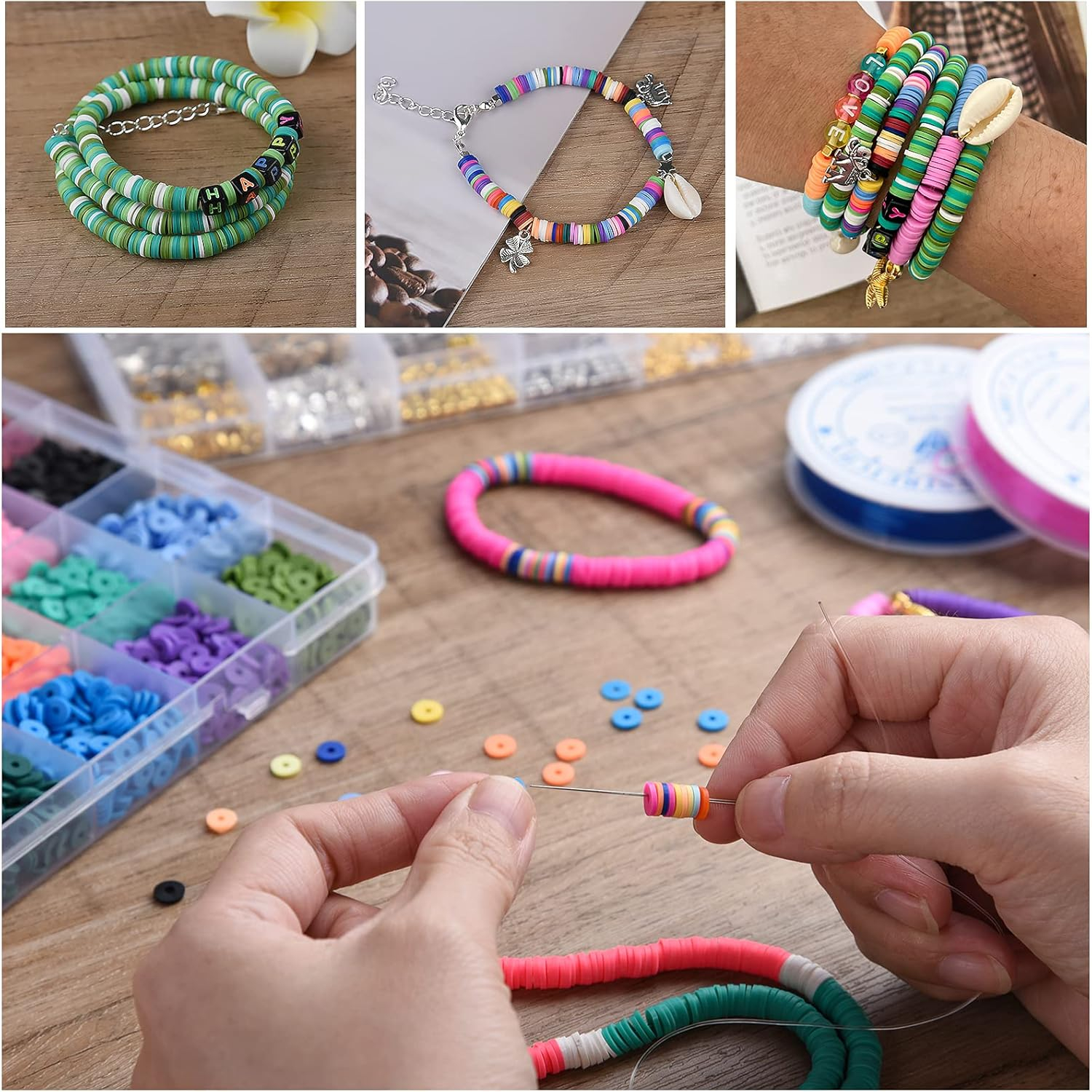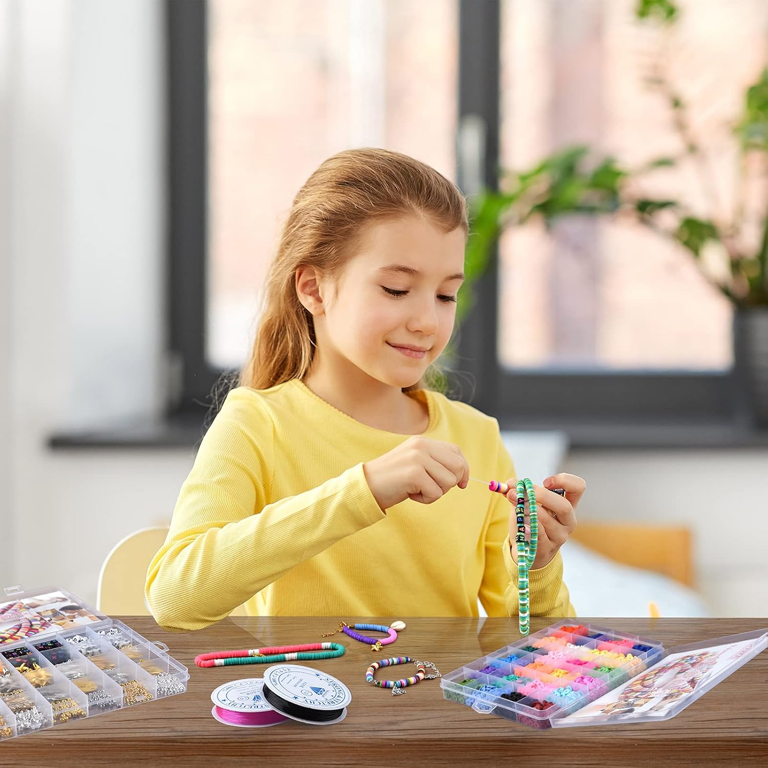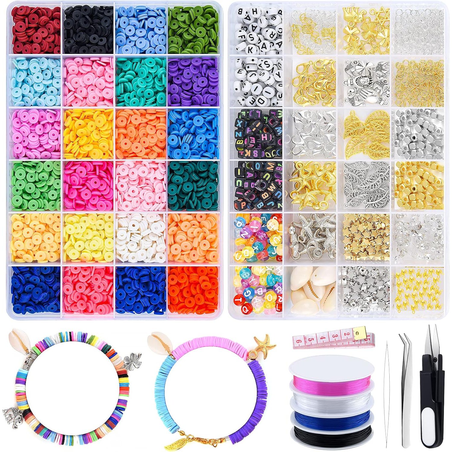 Set complet margele din lut pentru bijuterii DIY copii, bratari si coliere, 24 culori, accesorii aurii-argintii